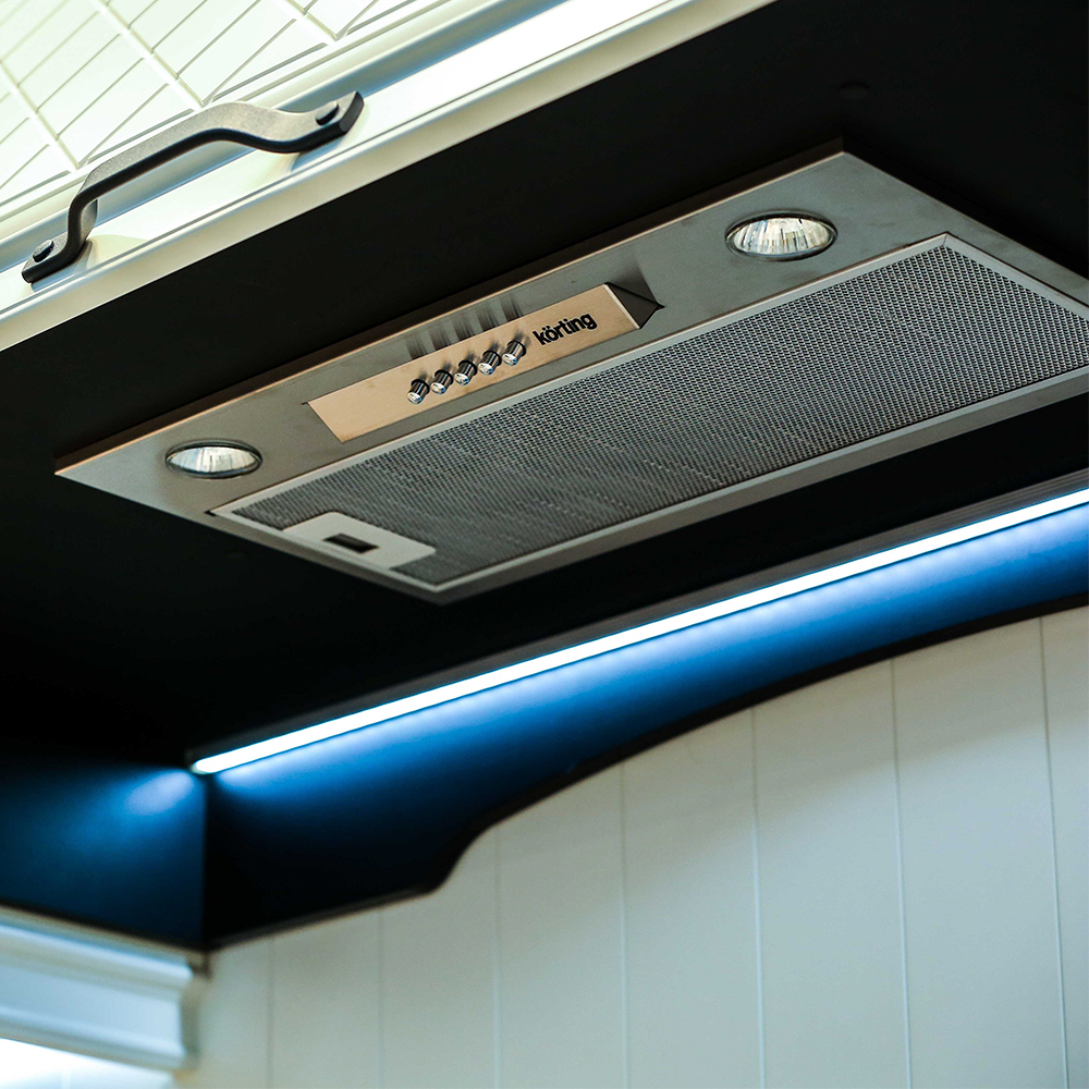 Ключевой особенностью данного типа монтажа является возможность встраивания вытяжки в кухни любого дизайна, потому что они монтируются в подвесной кухонный шкаф над плитой, что позволяет им быть абсолютно незаметными в интерьере вашей кухни.