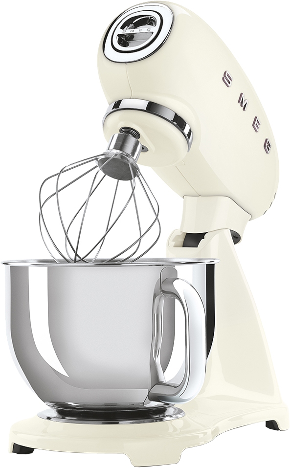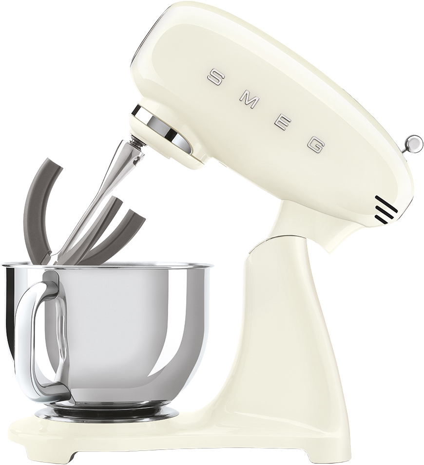 Планетарный миксер SMEG SMF03CREU, выполненный в стиле 50-х годов, подчеркнёт индивидуальность интерьера и станет настоящим украшением Вашей кухни в квартире или загородном доме. Предназначен для приготовления кремов, муссов, соусов, пюре и жидкого теста. Применение специальных насадок позволяет существенно расширить ассортимент приготавливаемых блюд. С их помощью данную модель можно использовать в качестве тёрки или мясорубки, а также для приготовления различных блюд итальянской кухни.
