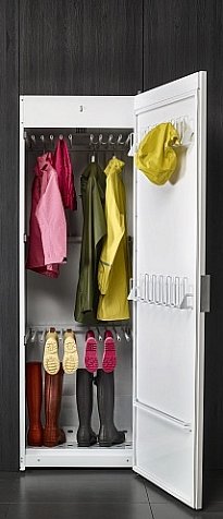 Сушильный шкаф Asko DC7774 V.W отличается современным дизайном, который прекрасно впишется в интерьер прачечной или другого аналогичного помещения. Его корпус выполнен из высококачественной стали, что придаёт ему прочность и долговечность. Фасад прибора выкрашен в белый цвет, который легко сочетается с другой бытовой техникой по уходу за бельем. Внутри расположено множество полочек, держателей и вешалок. Есть специальный отсек для перчаток. С ним даже «капризные» изделия не сядут и не потеряют форму. Ящик для обуви позволяет сушить кожаные ботинки и резиновые сапоги. Материал не портится и не лопнет.